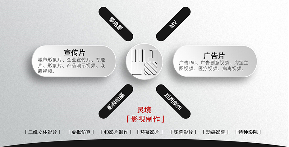 灵境汇聚行业内权威影视制作人才和优秀导演,拥有国内一流的创作班底以及多年CCTV、凤凰卫视合作经验,业务涵盖企业/产品宣传片拍摄+3D动画+视频特效制作、沉浸式体感投影艺术、VR版MV、3D交互视频、4D/5D电影、动感影院、巨幅投影视频片源制作等。